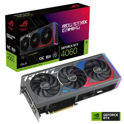 The ASUS ROG Strix GeForce RTX 4060 OC Edition is a high-performance gaming GPU built for smooth 1080p and 1440p gaming with real-time ray tracing and AI-powered DLSS 3. Powered by NVIDIA's Ada Lovelace architecture, it delivers higher frame rates, superior power efficiency, and stunning visual fidelity.