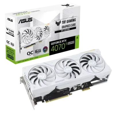 The ASUS TUF Gaming GeForce RTX 4070 Ti SUPER BTF White OC Edition is designed for high-performance 1440p and 4K gaming, leveraging the NVIDIA Ada Lovelace architecture for unmatched power efficiency and AI-driven graphics performance. With 16GB of high-speed GDDR6X memory, real-time ray tracing, and DLSS 3 frame generation, this GPU ensures stunning visuals and ultra-high frame rates.