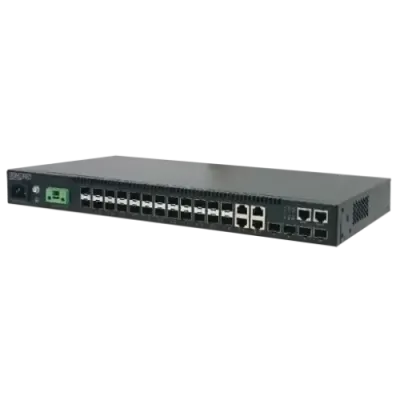 The Edgecore ECS4120-28F is a high-performance managed Ethernet aggregation switch, designed to deliver scalable, secure, and high-speed networking. It features 20x Gigabit Ethernet SFP ports, ensuring seamless fiber connectivity, along with 4x CG (Combo Gigabit) ports for enhanced network flexibility. Additionally, 4x 10G SFP+ uplink ports provide high-speed data transfer for demanding enterprise applications.