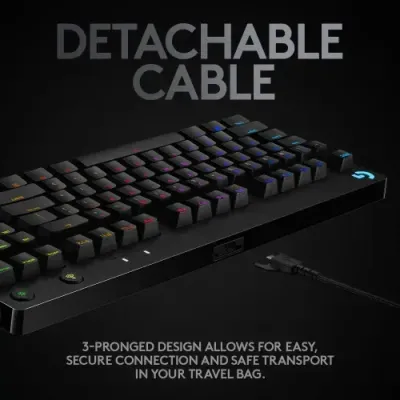 | Others | Pro-inspired tenkeyless design GX Blue Clicky mechanical switches LIGHTSYNC RGB lighting Onboard lighting profile 1.8 m detachable cable 12 programmable F-keys 1 ms report rate |