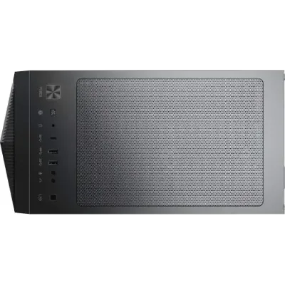 The front I/O panel is equipped with two USB 3.2 Gen 1 Type-A ports, one USB 3.2 Gen 2x2 Type-C port, and audio and microphone jacks, providing convenient connectivity options for your peripherals.