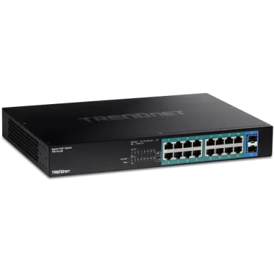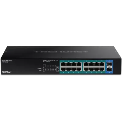The TRENDnet TPE-TG182 is a high-performance 18-port Gigabit PoE+ switch, designed for businesses requiring fast and reliable network connectivity with PoE capabilities. It features 16 Gigabit PoE+ ports and 2 SFP slots for seamless high-speed uplink connections.